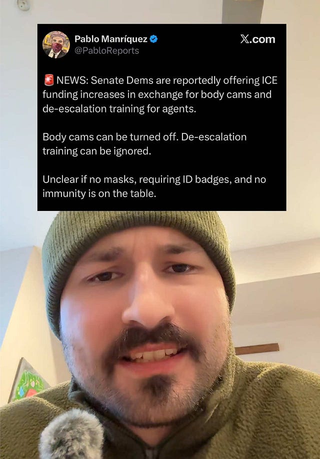 Seven House Democrats joined all Republicans except one (Rep. Thomas Massie of Kentucky) last Thursday to give ICE $10 billion and Border Patrol $18.3 billion, despite the murder of Renee Good and other violence against protesters in Minneapolis.